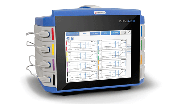 Der PeriFlux 6000 kann Sie bei der Beurteilung von Patienten mit Wunden im Bereich der unteren Gliedmassen unterstützen. Durch das Monitoring des transkutanen Sauerstoffgehalts im Gewebe können Sie die Mikrozirkulation in den Gliedmassen des Patienten bestimmen.