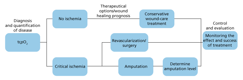 Mittels der transkutanen Sauerstoffmessung (TCOM) oder tcpO2 kann das Vorhandensein einer Gefäßerkrankung vorhergesagt werden. Sie kann somit zur Therapiesteuerung eingesetzt werden. [9]