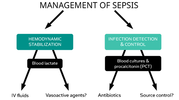 La PCT et le lactate sont des aides utiles au diagnostic et à la prise en charge du sepsis et complètent l'examen clinique général du patient [3].